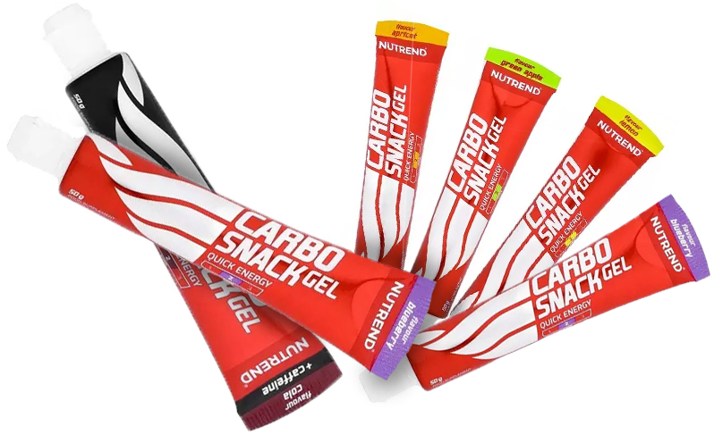 Kofeinový Carbosnack gel nabízející bleskové doplnění energie při náročných sportovních aktivistách, kdy tělo není schopno přijmout běžnou pevnou stravu.