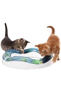 Zábavná dráha se svítícím míčkem, kterou lze pospojovat do různých tvarů. Horní díly dráhy jsou z průhledného plastu, takže kočka míček vidí, slyší a díky otvorům ho může snadno koulet, nemůže ho však vyndat.