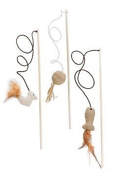 Udička ze dřeva s hračkou je ideální hračkou pro kočky, které rády tráví svůj čas hrou. Rybářský prut podporuje zájem kočky a zvyšuje její zvídavost. Tato hračka pro kočky je vyrobena ze dřeva a má vtipný přívěsek, který je vyroben ze šňůry a syntetických vláken. Pokud s udičkou budete mávat, přívěsek se houpe a kočka jej loví (podporuje lovecký instinkt).