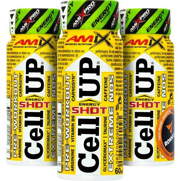 CellUp Shot je unikátní vysoce koncentrovaný předtréninkový doplněk stravy v tekuté formě v kapesním balení ampulí. CellUp® obsahuje patentovanou, vysoce koncentrovanou formu práškového glycerolu a křemíku (GlyceroMax®), dále beta-alanin (CarnoSyn®), taurin, L-arginin HCl, N-acetyl L-tyrosin, kofein a vitamín B6 s vitamínem C. Díky jednotlivým ampulím si jej můžete snadno vzít kamkoli!