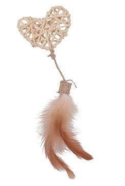 Hračka pro kočky, 100% přírodního původu - rákos, jutové spoje, peří a švy z bavlny.