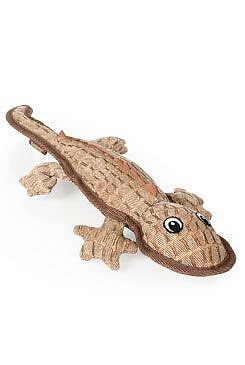 Moderní, odolná textilní hračka ve tvaru ještěrky - přetahovadlo s texturovaným povrchem.
