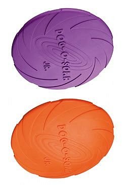 Létající talíř několika barevných provedení. Příjemný protiskluzový materiál. Ve vodě plave.