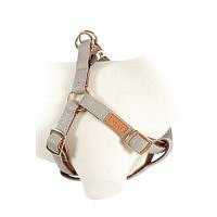 Nastavitelný postroj. Kožená nášivka s logem IMAO. Postroj opatřen pozlaceným plastovým zapínáním a pozlacenými kovovými doplňky. Na přezce je vygravírováno logo ZOLUX.