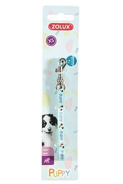 Vodítko pro štěňata v jemných pastelových barvách s nápisem PUPPY a obrázkem.