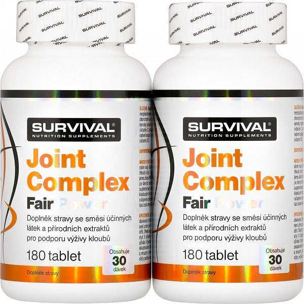 Joint Complex Fair Power představuje unikátní směs 11 látek, ověřených výzkumy, pro výraznou podporu kloubního aparátu, která – bez jakékoliv nadsázky či reklamního přehánění – nemá na současném evropském trhu obdoby. Receptura produktu Joint Complex Fair Power byla postavena na základě studií věnujících se problematice netraumatického poškození kloubů a pojivových tkání. Joint Complex Fair Power ocení tedy nejen zdraví sportovci v rámci prevence, ale také jedinci s již přítomnými zdravotními obtížemi. Joint Complex Fair Power představuje ideální suplement pro maximální podporu výživy kloubního aparátu v té nejvyšší kvalitě značky Survival. Porovnejte složení svého kloubního preparátu s Joint Complex Fair Power a sami se přesvědčte o jeho kvalitách!