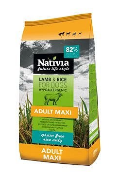 Charakteristika Nativia Lamb/Rice: Hypoalergenní řadu Lamb vytvořil výrobce Nativia speciálně pro psy s prokázanou alergií na kuřecí bílkovinu. Díky novince Puppy může majitel krmit svého psa jehněčí alternativou již od 2 měsíce. Řada Lamb je ošetřena přírodními antioxidanty ve formě směsi tokoferolů a rozmarýnového extraktu. Stopové prvky jsou dotovány ve formě chelátů, tzn. v přírodní organické formě. Vynikající stravitelnost je podpořena extraktem z čekanky (prebiotikum) a přítomností bakterií Enterococcus faecium (probiotikum) pro úpravu rovnováhy střevní mikro?óry a posílení imunitního systému. Pro podporu regenerace jaterních buněk je zařazen extrakt z ostropestřce mariánského. Produkt Puppy pro štěňata obsahuje DHA pro správný rozvoj mozku, provedení Adult a Adult Maxi pro dospělé psy jsou doplněna o „kloubní výživu“ (SYSADOA látky).