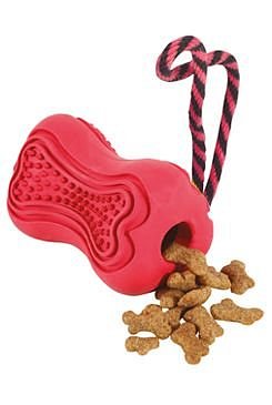 Gumová kost na pamlsky, vhodná i k samostatné hře.