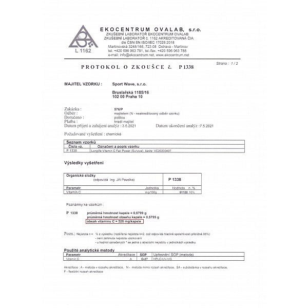 Vitamín C ve speciálních kapslích a tzv. „time-release“ mikroperlách pro postupné uvolňování.