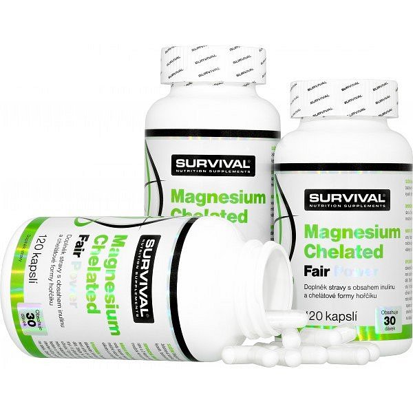 Magnesium Chelated Fair Power představuje unikátní kombinaci inulinu a vysoce vstřebatelné chelátové formy hořčíku – bisglycinátu hořečnatého. To vše v příjemných želatinových kapslích, jejichž dávkování si můžete zvolit dle vlastní potřeby! Pro jakýkoliv fyzický výkon je hořčík esenciálním prvkem zajišťujícím bezproblémovou nervosvalovou kontrakci. Zvýšenou potřebu magnézia pociťují hlavně vytrvalostní sportovci, jejichž dlouhotrvající výkon je na dostatečné zásobě hořčíku v organismu zcela závislý.