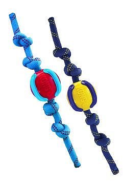 KONG Jaxx Brights Ball s provazem je vyroben pro dlouhotrvající zábavu při tahání.