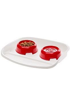 Dvě plastové misky s praktickým podnosem, objem misek 0,3 litrů. Vhodné pro kočky a malá plemena psů.