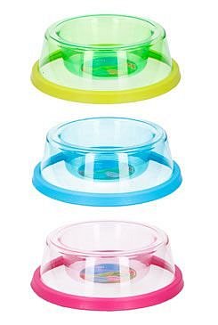 Stylová miska z barevného transparentního plastu s protiskluzovou základnou. Barvu misky pro psy není možné vybrat.