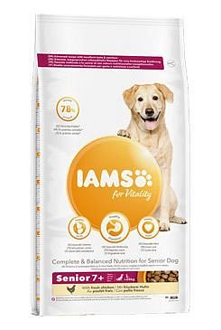 Krmivo IAMS for Vitality pro psí seniory velkých plemen je 100% kompletní a vyvážené, odborníky sestavené krmivo, které bude vašemu zvířeti chutnat a svědčit. Naše nová a vylepšená receptura pro psí seniory s čerstvým kuřecím masem je založena na pečlivě vybraných, kvalitních živočišných bílkovinách, které podporují sedm znaků zdravé vitality psa. Aby byl váš pes zdravý, aktivní a plný energie, obsahují naše lahodné receptury až 78 % živočišných bílkovin (z celkového obsahu bílkovin). Umožněte svému mazlíčkovi užívat si každý den naplno!