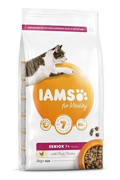 Krmivo IAMS for Vitality pro kočičí seniory je 100% kompletní a vyvážené, odborníky sestavené krmivo, které bude vašemu zvířeti chutnat a svědčit. Naše nová a vylepšená receptura pro kočičí seniory s čerstvým kuřecím masem je založena na kvalitních živočišných bílkovinách pečlivě vybraných tak, aby podporovaly sedm znaků zdravé vitality kočky. Aby byly kočky zdravé, aktivní a plné energie, obsahují naše lahodné receptury až 88 % kuřecího masa (z celkového obsahu bílkovin).