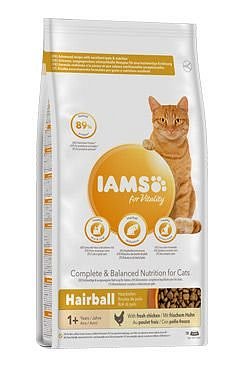 Naším závazkem je nabídnout kočkám specializované krmivo se skvělou chutí, které si váš domácí mazlíček bezvýhradně zamiluje a které bude podporovat všech sedm znaků zdravé vitality. Oproti našemu běžnému krmivu IAMS pro dospělé kočky s čerstvým kuřecím masem pomáhá tato receptura snižovat tvorbu chlupových bezoárů až dvakrát efektivněji. Díky vyváženému obsahu omega-3 a omega-6 mastných kyselin v krmivu IAMS budete moct obdivovat zdravou kůži a lesklou srst svého zvířete. Své receptury jsme vyvinuli tak, aby snižovaly pH v močové soustavě a udržely ji zdravou. Připravte se, že vaše kočka bude skákat a řádit. To díky kvalitním bílkovinám a nezbytným minerálům, které pomáhají udržet zdravé svaly a kosti. Kombinace antioxidantů s vitamínem E posiluje imunitu, takže ji už při výpravách nic neohrozí. A až ji uslyšíte chroupat naše granule s vyváženým obsahem minerálů v každém soustu, můžete si být jisti, že bude mít silné a zdravé zuby. Při úklidu kočičí toalety oceníte zdravé trávení kočky díky optimální kombinaci vlákniny, prebiotik a řepné dužiny. Naše krmiva navíc obsahují základní živiny, jako např. taurin, pro zdravé srdce, aby vám váš miláček nikdy nepřestal projevovat lásku.