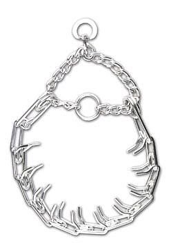 Používá se na problémové psy nebo k odstranění nežádoucího chování u psů (napadání jiných psů a koček, utíkání za běžci či zvěří, napadání cyklistů apod.). Ostnatý obojek má ostny směrem dovnitř. Nejedná se o ostny v pravém slova smyslu - na konci jsou tupě zbroušeny. Obojek vyvíjí tlak na krk psa. Hlavní zásadou je škubat(!), ne tahat! Jestliže chcete, aby Váš pes šel pomaleji, škubnutím ho vraťte zpět k noze. Pokud jedno škubnutí nezabere, škubněte znovu, ale víc důrazně. Jde o to, aby si pes uvědomil, že dělá něco špatně. Pro správné používání tohoto obojku doporučujeme konzultaci se zkušeným cvičitelem, který Vám ukáže, "jak na to".