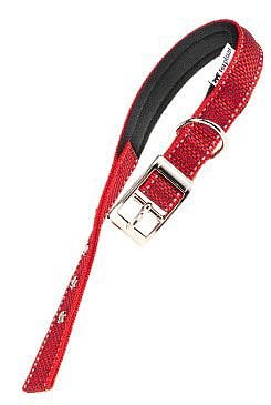 Látkový obojek je vyroben z robustní a elegantní tkaniny. Má čtyři otvory pro individuální nastavení kolem krku psa. Rafinovaná kovová přezka je velmi elegantní. Díky měkkému polstrování vnitřního popruhu je obojek na nošení vysoce komfortní a psovi nikterak nepřekáží. Navíc je obojek vybaven reflexními švy, které nositele zviditelňují i za zhoršených světelných podmínek (ideální pro večerní procházky).