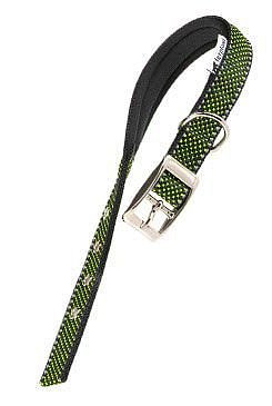 Látkový obojek je vyroben z robustní a elegantní tkaniny. Má čtyři otvory pro individuální nastavení kolem krku psa. Rafinovaná kovová přezka je velmi elegantní. Díky měkkému polstrování vnitřního popruhu je obojek na nošení vysoce komfortní a psovi nikterak nepřekáží. Navíc je obojek vybaven reflexními švy, které nositele zviditelňují i za zhoršených světelných podmínek (ideální pro večerní procházky).