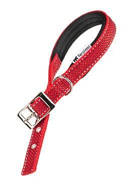 Látkový obojek je vyroben z robustní a elegantní tkaniny. Má čtyři otvory pro individuální nastavení kolem krku psa. Rafinovaná kovová přezka je velmi elegantní. Díky měkkému polstrování vnitřního popruhu je obojek na nošení vysoce komfortní a psovi nikterak nepřekáží. Navíc je obojek vybaven reflexními švy, které nositele zviditelňují i za zhoršených světelných podmínek (ideální pro večerní procházky).