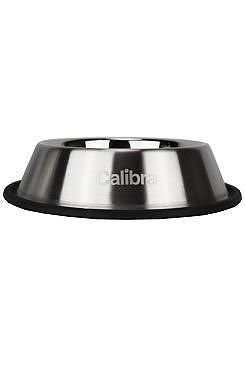Nerezová miska na krmivo pro psy nebo kočky, černá protiskluzová guma na okraji.
