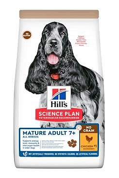 Receptura krmiva Hill’s Science Plan No Grain Mature Adult s kuřetem podporuje specifické potřeby spojené se stárnutím. Poskytuje lehce stravitelnou potravu se synergickou směsí surovin, a dodává tak energii a podporuje aktivitu.