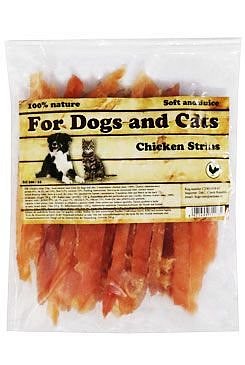 Kuřecí maso ve tvaru proužků je pamlskem pro psy, který se skládá z tenkých proužků kuřecího masa, zpravidla sušených nebo uzených, aby byly trvanlivé a snadno stravitelné pro psy. Tento pamlsek je oblíbený mezi majiteli psů, protože nabízí jednoduchou, ale chutnou pochoutku, kterou psi mohou okusovat a žvýkat.