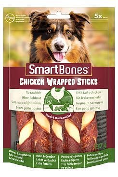 SmartBones Chicken Wrapped Mini Sticks jsou neodolatelně chutné, žvýkací tyčinky bez surové kůže, zabalené v křupavém kuřeti pro opravdovou zábavu při žvýkání. SmartBones® jsou vyrobeny z pravého kuřete a zdravé zeleniny a mají báječnou chuť, které psi neodolají!