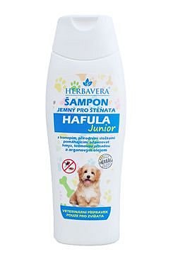 má neutrální pH, dobře působí na kůži a srst štěňat a mladých psů