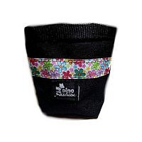 Pamlskovník Dinofashion je praktická taštička na pamlsky vyrobená z pevné voděodolné látky s motivem Happy Flowers. Zapíná se na suchý zip. Vnitřek pamlskovníku obsahuje podšívku, ze které snadno vyklepete zbytky pamlsků. Na zadní straně je našitá karabina, která se připevní na poutko kalhot nebo opasek. Vyrobeno v České republice.