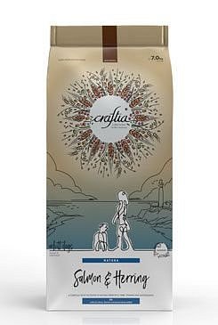 Losos a sleď. Kompletní krmivo pro dospělé psy středních a velkých plemen.
