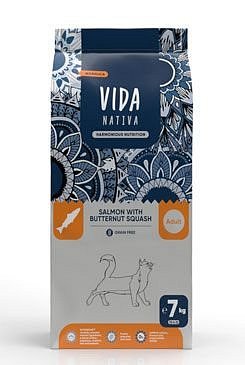Složení: dehydratovaný lososový protein (22 %), brambory, hrachový škrob, losos (11 %), rybí tuk (z lososa), hydrolyzované rybí proteiny, sušená vejce, kuřecí tuk, lněné semínko, tykev muškátová (4%), jablka Anurka (4 %), chřest, brokolice, špenát, sušené cukrovarské řízky, vojtěšková mouka, hrachová vláknina, uhličitan vápenatý, fosforečnan vápenatý, chlorid draselný, chlorid sodný, sušené pivovarské kvasnice, inulin z čekanky (0,4 %), kvasnicový extrakt (zdroj mannan-oligosacharidů) (0,2 %), frukto-oligosacharidy (0,2 %), Ascophyllum Nodosum, sušená máta, měsíček lékařský, slupky a semena Psyllium, yucca schidigera.
