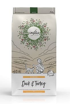Složení: čerstvé vykostěné kachní (21%), čerstvé vkyostěné krůtí (17%), hrachový škrob, dehydratovaný kachní protein (10%), kuřecí tuk, extrahovaná semena merlíku chilského (4%), hydrolyzované rybí proteiny, hydrolyzované drůbeží proteiny, kuřecí droby (játra, srdce, ledviny), sušená vejce, rybí tuk (z lososa), sušené cukrovarské řízky, lněné semínko, vojtěšková mouka, hrachová vláknina, sušená acerola (0.5%), sušená dýně (0.5%), dihydrogen fosforečnan vápenatý, chlorid draselný, uhličitan vápenatý, inulin z čekanky (0.4%), kvasnicový extrakt (zdroj mannan-oligosacharidů) (0.3%), frukto-oligosacharidy (0.3%), sušené pivovarské kvasnice, sušené borůvky, sušené brusinky, sušená jablka Anurka, sušený chřest, chlorid sodný, Ascophyllum Nodosum, rozmarýn, kurkuma, měsíček lékařský, slupky a semena Psyllium, yucca schidigera.