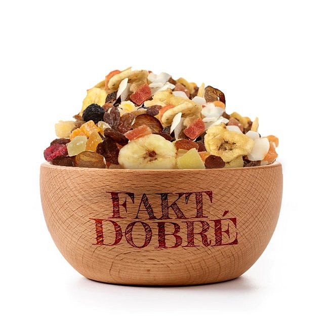 Směs proslazeného ovoce, sušeného ovoce a skořápkových plodů.