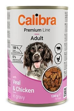 Kompletní krmivo pro dospělé psy. Duo nepravidelné kousky konzervy pro psy s telecím a kuřecím v omáčce.