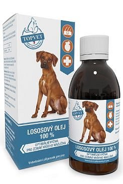 Lososový olej je exkluzivní přírodní doplněk stravy pro vaše psy. Je bohatým zdrojem Omega 3, 6 nenasycených mastných kyselin a dalších hodnotných látek. Při pravidelném používání snížíte riziko kardiovaskulárních onemocnění, snížíte hladinu cholesterolu v krvi, významně zlepšíte kvalitu srsti. Lososový olej má pozitivní vliv na fungování imunitního systému. Doporučuje se při problémech s reprodukcí.