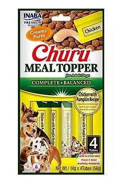 Psy už obyčejné suché krmivo nebaví? Zpestřete jim stravu krémovým Churu Meal Topperem s kuřetem a dýní, který budou milovat. Churu Meal Topper je kompletní a vyvážené krmivo pro dospělé psy vyrobené ze surovin odpovídající lidské kvalitě. Churu Meal Topper je vyroben z farmově chovaných kuřat a neobsahuje obiloviny, konzervační látky ani umělá barviva. Má vysoký obsah vody, což přispívá k celkovému zdraví psů. Navíc je obohacen o taurin, extrakt ze zeleného čaje, vitamíny a minerály. S Churu Meal Topperem bude krmení chutnější a zábavnější než doposud.