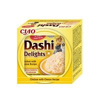 Dashi je tradiční japonský rybí vývar z tuňákových vloček, který je známý svou vyjímečnou, lahodnou chutí. Zařazení Dashi do jídelníčku vaší kočky může dodat krmení nový rozměr a učinit ho vyjímečným zážitkem. Nejde jen o chuť - dashi může poskytnout i důležité živiny včetně vitaminů a minerálů. Dashi má nízký obsah kalorií a tuku, takže je zdravým doplňkem stravy vaší kočky. Je to produkt na bázi vývaru, což znamená, že obsahuje vysoké množství vody a tím pomáhá udržet zdraví vaší kočky. Dashi se může stát chutným a výživným doplňkem stravy vaší kočky, který si díky její neodolatelné chuti určitě zamiluje. Všechny produkty Inaba jsou vždy bez obilovin, zbytečných ingrediencí a pochybných přísad a jsou vyrobené z pravého mořského tuňáka a kuřat chovaných na farmách.