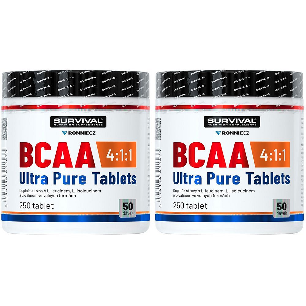 [tip] BCAA 4:1:1 Ultra Pure Tablets jsou novou a lepší verzí oblíbených BCAA 4:1:1 Fair Power značky Survival vyrobenou s použitím moderní výrobní technologie pro dosažení co nejčistšího složení bez zbytečných pojiv.