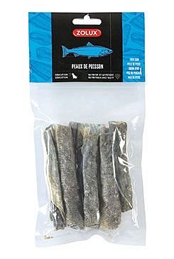 Pochoutka z rybí kůže pro psy je ideálním doplňkem denní porce krmiva. Svačiny připravené ze 100% ingrediencí přírodního původu jsou mimořádně chutné a lehce stravitelné. Křupavá, vysušená rybí kůže pomáhá odstraňovat zbytky potravy z mezizubních prostor a příznivě ovlivňuje ústní hygienu.