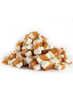 Složení: Kuřecí maso 69%, kukuřičný škrob 18%, laktát vápenatý 6%, Food guma 0,2%, glycerin 4%, rostlinný protein 1,8%, přírodní sladidlo (maltitol) o 0,9%, ocet 0,1%
