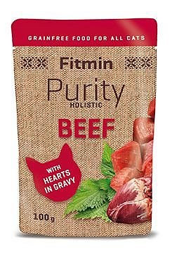 Fitmin Purity Cat Pouch Beef je ideální volbou pro každou kočku včetně koťat. Tyto lahodné 100g kapsičky obsahují poctivé maso ve vývaru, bez přidaných obilovin, cukrů, barviv a konzervantů. S obsahem 96 % hovězího masa a srdcí ve vývaru, které jsou bohatým zdrojem taurinu, podporují zdravý zrak, srdeční činnost a imunitní systém. Kopřiva v kapsičkách podporuje imunitu a zdraví močových cest, zatímco prebiotika zlepšují trávení. Kapsičky jsou doplněné o potřebné vitamíny a minerály, což z nich činí ideální volbu pro kočky, které odmítají granule. Vyzkoušeno i těmi největšími kočičími labužníky.