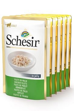 Kapsičku pro kočky Schesir Cat Adult in Jelly Pouches s obsahem kvalitních kousků masa v chutném želé si vaše kočka zamiluje. Kousky masa jsou rozdrobeny pro snadný příjem, stále jde ale o opravdové kousíčky masa, nikoliv mletého. Konzistence je díky hustému želé měkká a chuť je naprosto výborná. Pochoutka je také pečlivě sestavena tak, aby uspokojila i starší kočky, které mají problémy s polykáním.