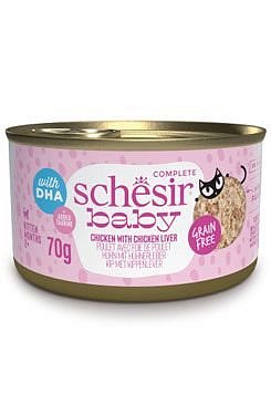 Již od prvního roku života potřebuje kotě podporu ve vývoji a doprovod při přechodu z mateřského mléka do úplného odstavení. To je důvod, proč Schesir Baby nabízí kompletní a vyvážené receptury s jemnou texturou, formulované tak, aby uspokojily specifické potřeby kotěte již od prvních týdnů života. Obsahuje taurin pro podporu růstu a DHA pro podporu správného vývoje mozku. Je založen na skutečné masové bílkovině v kombinaci s dalšími důležitými složkami a neobsahuje žádné obiloviny.