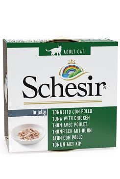 Konzervu pro kočky Schesir Cat Adult in Jelly s obsahem kvalitních kousků masa v chutném želé si vaše kočka zamiluje. Kousky masa jsou rozdrobeny pro snadný příjem, stále jde ale o opravdové kousíčky masa, nikoliv mletého. Konzistence je díky hustému želé měkká a chuť je naprosto výborná. Pochoutka je také pečlivě sestavena tak, aby uspokojila i starší kočky, které mají problémy s polykáním.