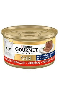 Kompletní, superprémiové krmivo Gourmet Gold konz. pro dospělé kočky všech plemen, s obsahem hovězího masa.