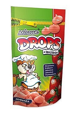 Jahodové bonbony pro hlodavce, doplňkové krmivo.