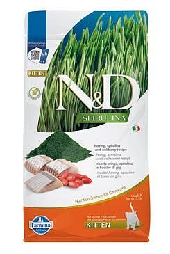 Sleď, spirulina a kustovnice čínská. Kompletní krmivo pro koťata, březí nebo kojící kočky.