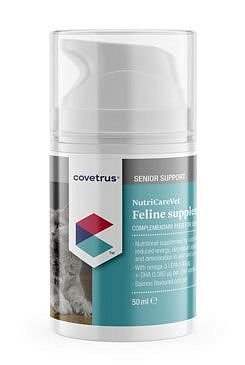 Doplňkové krmivo NutriCareVet Feline pro starší kočky ve formě gelu. Tento perorální gel dodává kočkám důležité živiny, které potřebují ve zvýšené míře nebo které si kočky samy nedokáží vytvořit, případně které již jejich tělo nedokáže vytvořit v dostatečném množství. Tento výrobek se doporučuje kočkám, které vykazují nedostatek energie, sníženou chuť k jídlu, zvýšenou potřebu spánku a/nebo zhoršující se stav kůže a srsti. Doplněk stravy pro kočky.