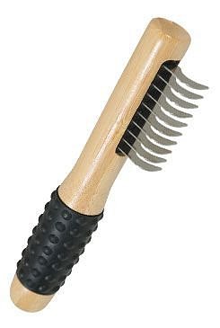 Prořezávací dřevěný kartáč je profesionální nástroj určený pro stříhání a odstraňování zacuchání srsti psů se střední a dlouhou srstí. Je součástí nové řady dřevěných kartáčů, hřebenů, nůžek a nůžek Zolux, vyrobených z odolných materiálů, jako je bambus, bukové dřevo, kančí štětiny a nerezová ocel. Kartáč je vybaven protiskluzovou bambusovou rukojetí, zajišťující pohodlí a přesnost při používání, a bezpečnými čepelemi z nerezové oceli, které efektivně zastřihnou i obtížné zamotání.
